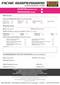 - Vous nous appeler au 05 58 41 99 00 pour vérifier les disponibilités de l'atelier, nous vous envoyons par email un bordereau Chronopost prépayé par Bud Racing et la fiche de préparation à compléter.